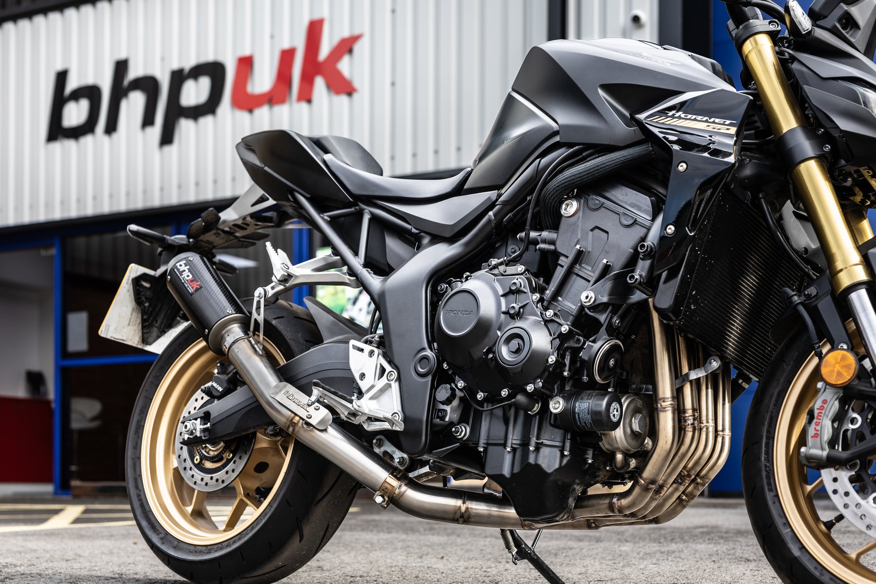 A huge amount of time was spent on the development of our exhaust system for the Honda CB1000 Hornet. We bought our development bike as soon as they became available and set about data logging both on our dyno and on the road. Hundreds of hours were spend testing the standard bike and every modification we made. We tried and tested several prototype systems before settling on the final design. Theories of what will work are all well and good, but dyno results and road testing speak for themselves.